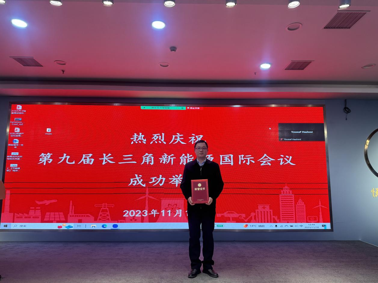 2023年11月18日上午,第九屆長三角新能源國際會議暨江蘇省可再生能源學會科學技術獎頒獎典禮在江蘇省南京市鼓樓高新技術產業開發區通過線下線上相結合的形式隆重舉行。會議由江蘇省可再生能源學會、南京可再生能源學會主辦,東南大學、上海交通大學、浙江大學、中國科學技術大學、芬蘭阿爾托大學等國內外知名高校聯合承辦。